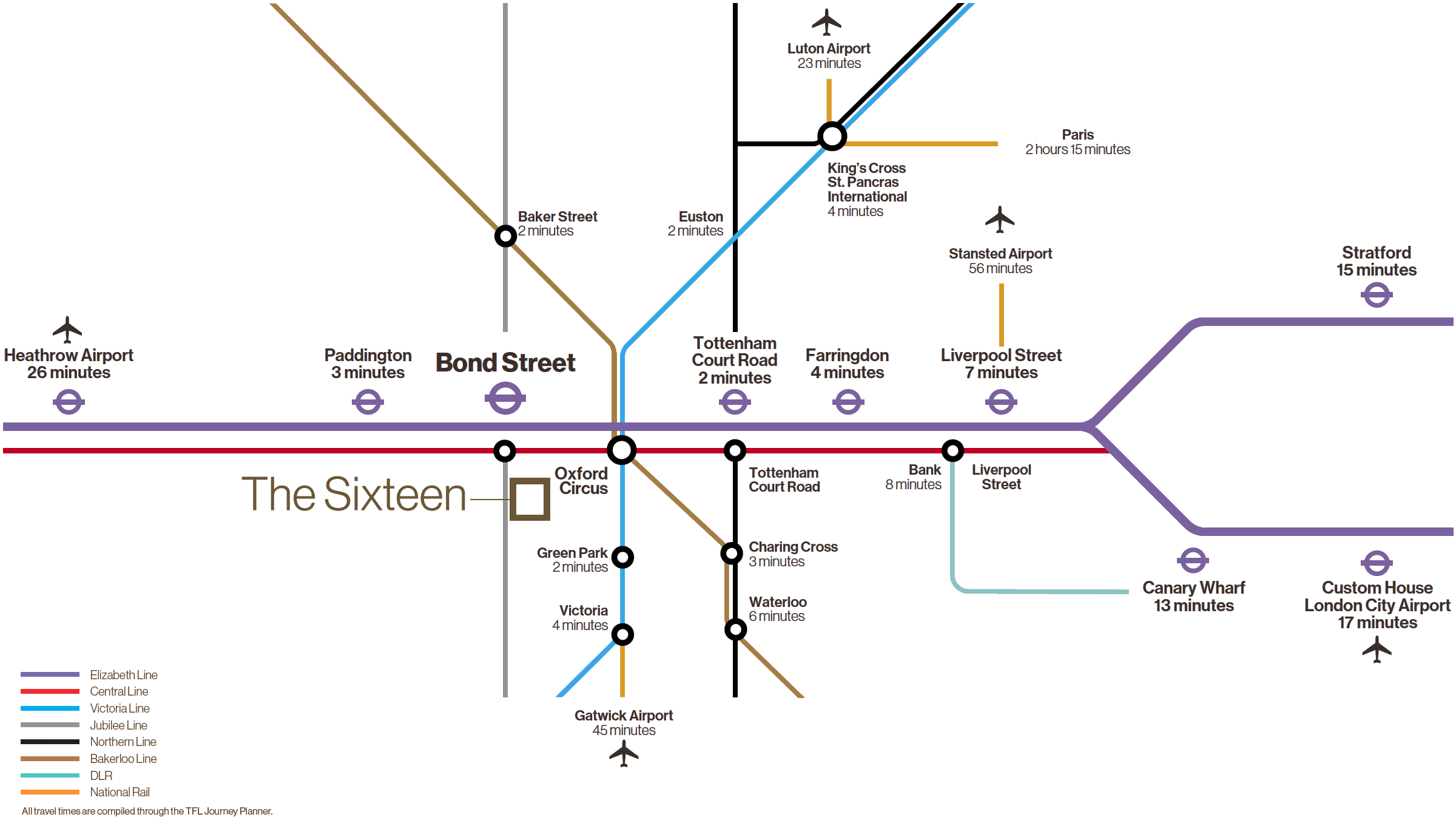 Bond Street and Oxford Circus tube stations are just a short walk. The Elizabeth Line will run from the new Bond Street station on the corner of Hanover Square next year.